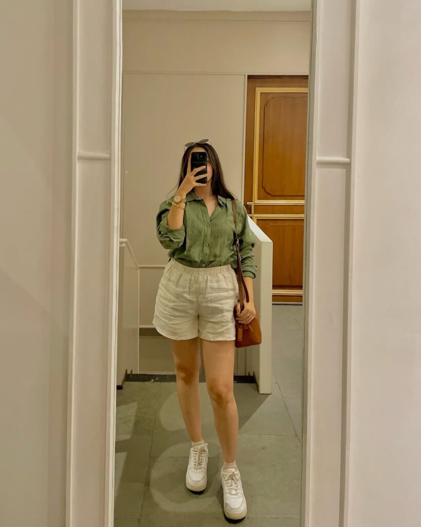 Linen shorts are a staple for hot weather. When paired with a loose button-down shirt, they create a breathable and stylish outfit that is perfect for summer.