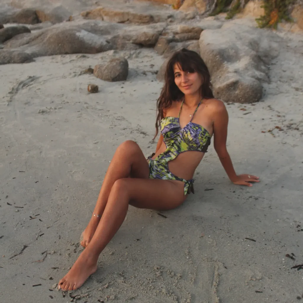 Paired with subtle jewelry like a pearl or shell necklace, this look is ideal for those who prefer soft glam aesthetics. It’s a great choice for daytime beach outings where you want something elegant yet comfortable.