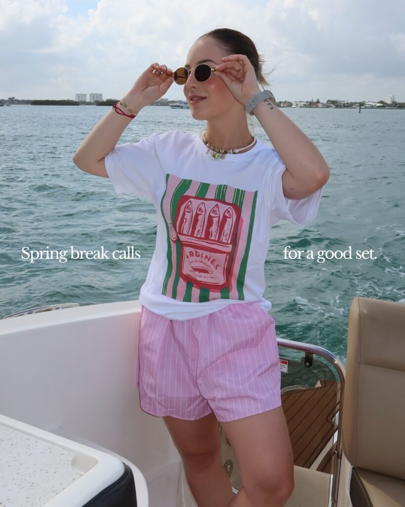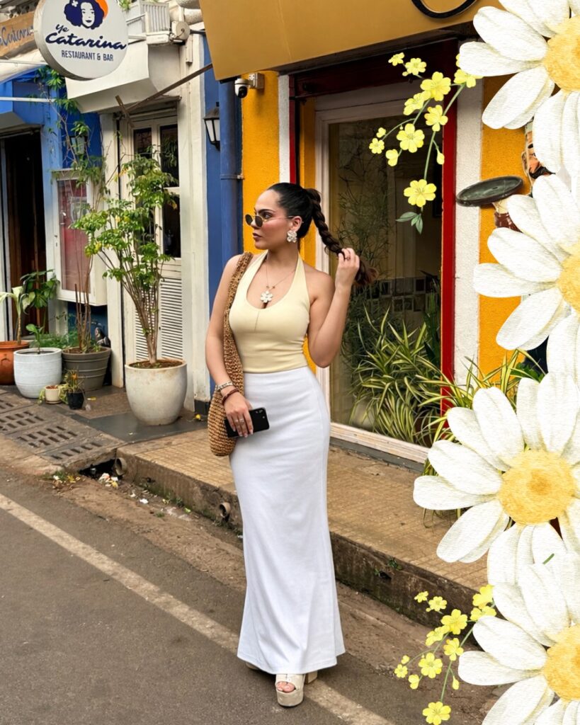 It’s not meant to be polished—it’s meant to feel carefree. Perfect for boat rides, beach parties, or spontaneous travel moments. Add sunglasses and layered necklaces, and the outfit instantly looks styled without effort.