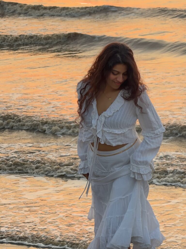 This is the kind of outfit that doesn’t try too hard but still looks beautiful in motion. Perfect for candid, natural moments.