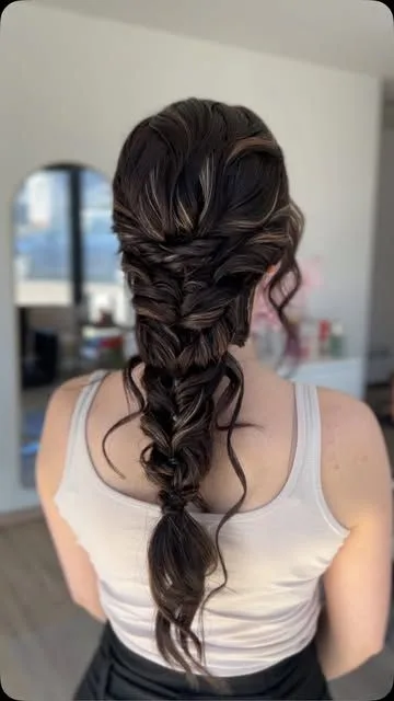 Elevate your formal look with this intricately woven fishtail braid, the ultimate choice for a romantic and Braided Prom Hairstyle. This soft, voluminous style perfectly transitions from a festive celebration to an elegant evening, making it a timeless favorite for any fashion-forward beauty blog.