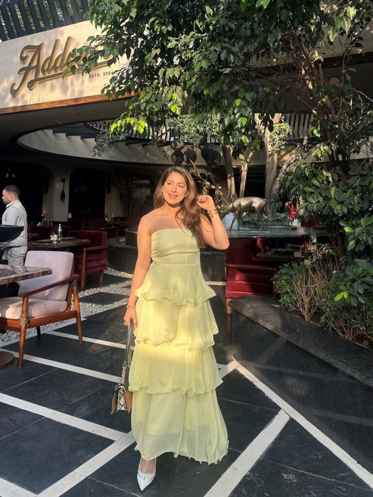 This pastel green tiered maxi dress brings soft, romantic energy to your summer wardrobe. The layered structure adds movement and volume, making it perfect for special occasions like brunches, garden parties, or daytime events. Keep accessories minimal to let the dress shine.