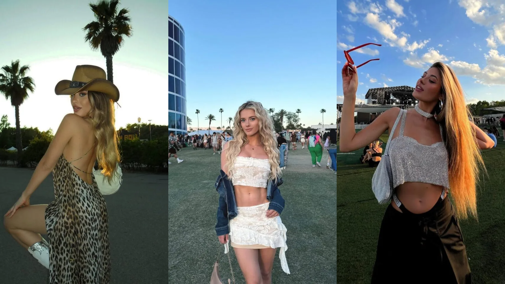 Channeling desert glam, this outfit is all about a bold leopard-print slip dress with delicate, strappy detailing and an open back—totally effortless for soaking up festival sunsets.